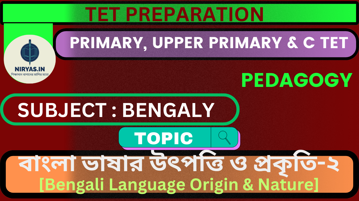 প্যাডাগোজি (Pedagogy) হল এমন একটি বিষয়বস্তু যেটি শিক্ষকতার যোগ্যতা নির্ণায়ক পরীক্ষারর ক্ষেত্রে অত্যন্ত প্রয়োজনীয় । প্রাথমিক টেট, উচ্চ প্রাথমিক টেট, সেন্ট্রাল টেট এমনকি স্কুল সর্ভিস টেট এর ক্ষেত্রে প্যাডাগোজি বিষয়টি থেকে বিষয় ভিত্তিক প্যাডাগোজি (Subject Pedagogy) এর উপর প্রশ্ন আসা স্বাভাবিক ব্যাপার । প্রতিযোগী শিক্ষার্থীদের বিষয়টি সম্পর্কে সুস্পষ্ট ধারণা প্রদানের জন্য এবং প্রতিটি বিষয়ের বিষয় ভিত্তিক প্যাডাগোজি তুলে ধরতে আমরা আরম্ভ করেছি Pedagogy বিভাগটি । এই বিভাগের একটি উপ-বিভাগ হলঃ বাংলা প্যাডাগোজি । বাংলা প্যাডাগোজিতে এখন আমরা আলোচনা করবো “বাংলা ভাষার উৎপত্তি ও প্রকৃতি” [Bengali Language Origin & Nature] নামক টপিকটির দ্বিতীয় অংশ । এই বিভাগের প্রতিটি টপিক দীর্ঘ আলোচনাযুক্ত, তাই একাধিক অংশে টপিক আলোচনা থাকবে । পরবর্তী বা পূর্ববর্তী অংশে যাবার জন্য পোস্টে উল্লিখিত নির্দেশ তথা Next Part বা Previous Part এ ক্লিক করুনঃ ।