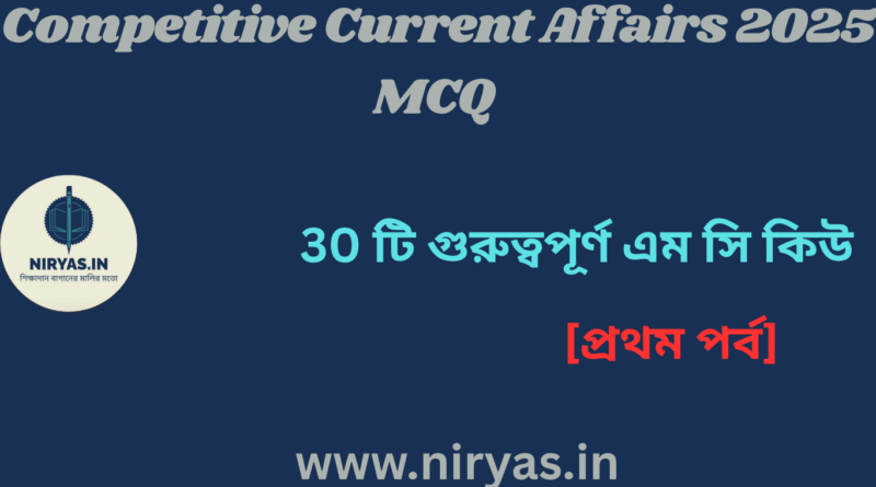 Read MoreCompetitive Current Affairs 2025 Part-1 প্রতিযোগিতামূলক পরীক্ষার ক্ষেত্রে একটি গুরুত্বপূর্ণ বিভাগ হলঃ Current Affairs; এই বিভাগ থেকে সাম্প্রতিক ঘটনাবলীর উপর