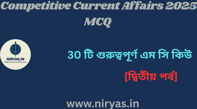Competitive Current Affairs 2025 Part-2 প্রতিযোগিতামূলক পরীক্ষার ক্ষেত্রে একটি গুরুত্বপূর্ণ বিভাগ হলঃ Current Affairs; এই বিভাগ থেকে সাম্প্রতিক ঘটনাবলীর উপর