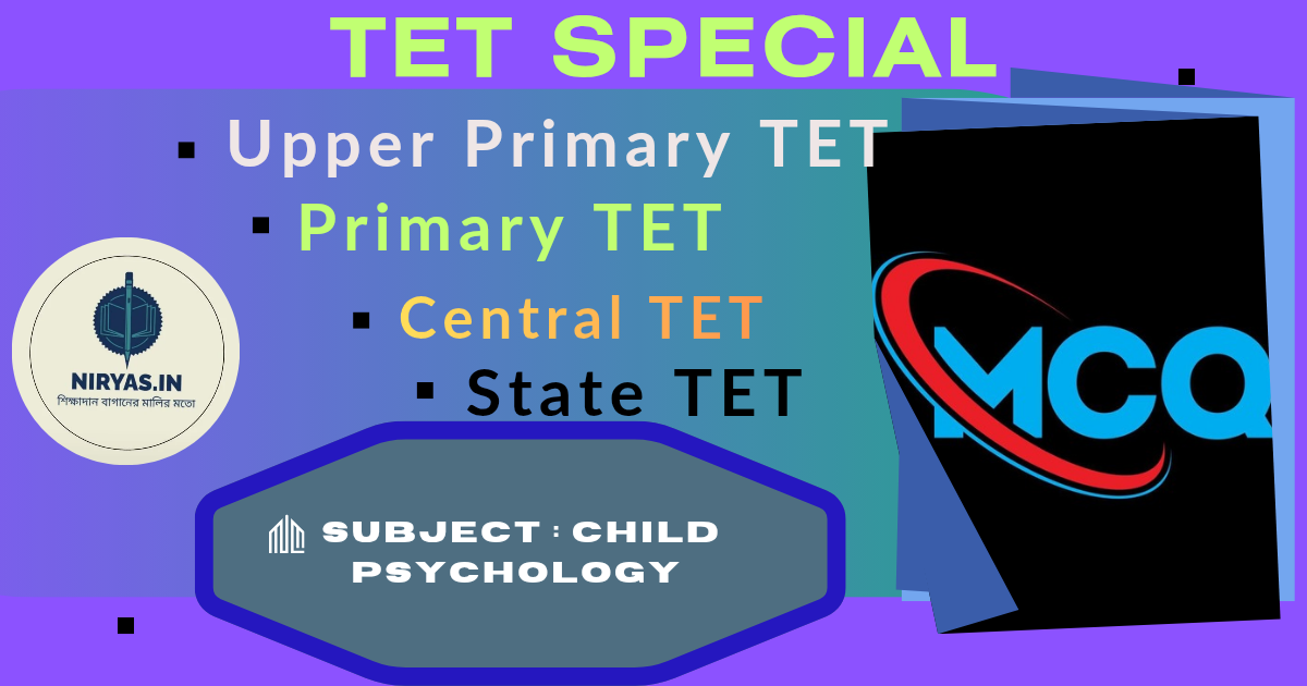 टीचर एलिजिबिलिटी टेस्ट (TET) टीचर रिक्रूटमेंट प्रोसेस में एक बहुत ज़रूरी टेस्ट है। चाइल्ड साइकोलॉजी और डेवलपमेंट, CTET, अलग-अलग STET, अपर प्राइमरी TET और वेस्ट बंगाल के प्राइमरी TET में एक बहुत ज़रूरी सब्जेक्ट है। इस सब्जेक्ट से 30 MCQ के लिए 30 मार्क्स दिए जाते हैं। इस बात को ध्यान में रखते हुए, Child Psychology MCQ Set-2 में अलग-अलग लेवल की परीक्षा के लिए सही 30 CDP सवालों का एक सेट दिया गया है। यह सेकंडों में सेट है।