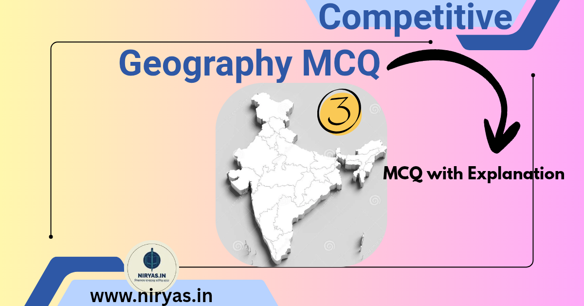 সর্বভারতীয় বিভিন্ন প্রতিযোগিতামূলক পরীক্ষায় ভারতীয় ভূগোল, প্রাকৃতিক ভূগোল ও বৈশ্বিক ভূগোল গুরুত্বপূর্ণ বিষয় । ভূগোলের এই অংশগুলি থেকে বিভিন্ন ধরনের প্রশ্ন এসে থাকে । বিভিন্ন সময়ে বিভিন্ন পরীক্ষায় আসা ভূগোলের প্রশ্নগুলির বিস্তারিত ব্যখ্যা সহ আলোচনা বাংলা ভাষায় পাওয়া মুশকিল হয়ে যায় । এই অসুবিধা দূর করার আমাদের ক্ষুদ্রতম প্রয়াস Competitive Geography MCQ এর পোস্টগুলি । প্রতিটি পর্বে 10টি করে এরুপ প্রশ্ন এবং সেগুলির ব্যখ্যা অন্তর্ভুক্ত থাকবে, যা আপনার প্রস্তুতিতে আপনাকে নিগূঢ়ভাবে সহয়তা করবে । এটি তৃতীয় অংশ ।