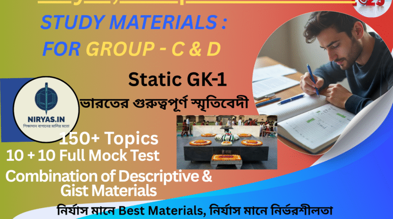 দীর্ঘদিন পর WBSSC আয়োজন করতে চলেছে WBSSC Group-C&D এর পরীক্ষা । অষ্টম শ্রেণী ও মাধ্যমিক যোগ্যতার এই পরীক্ষায় বেশ কয়েক লক্ষ (20+) পরীক্ষার্থী অংশগ্রহণ করবে । আগামি কয়েক বছর আর হয়তো এরূপ পরীক্ষা হওয়ার সম্ভাবনা প্রায় নেই । তাই প্রতিটি প্রতিযোগী এই পরীক্ষায় আপ্রাণ লড়াই করবে । তোমরা যারা একেবারেই সিরিয়াসভাবে প্রস্তুতি চালিয়ে যাবে তারাই টিকে থাকতে সক্ষম হবে । তোমাদের সাহায্যের জন্য আমরাও আপ্রাণ চেষ্টা চালিয়ে যাচ্ছি । তার নমুনাস্বরূপ Important Memorials of India GK-1 নামক পোস্টে ভারতের স্মৃতিবেদী সম্পর্কিত গুরুত্বপূর্ণ তথ্য উপস্থিত করলাম । নিয়মিত আপডেট থাকতে আমাদের সঙ্গে থেকে প্রস্তুতি চালিয়ে যাও ।