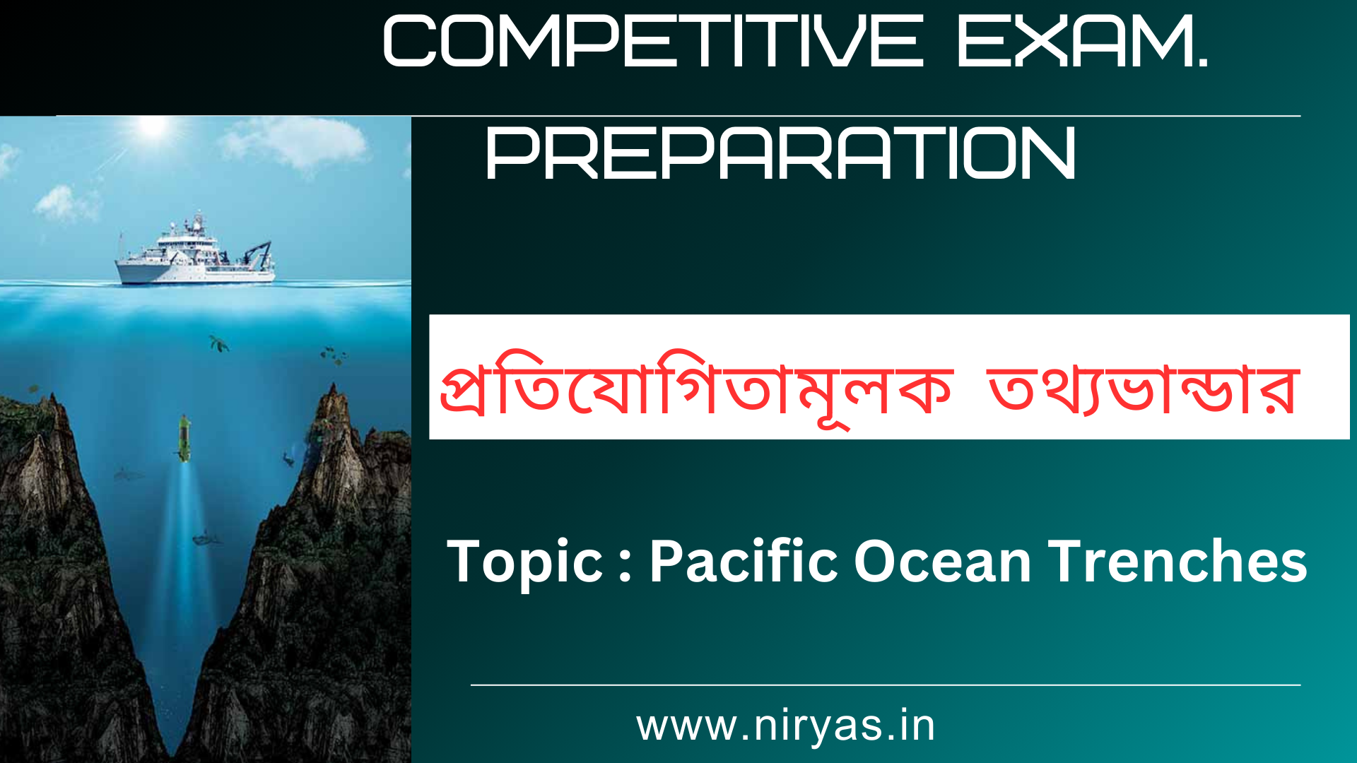 Welcome to www.niryas.in. In the field of competitive exams, brief information on various subjects helps the competing students. Although there are numerous contents in this case, a proper idea about to-the-point information on several subjects keeps the competing students ahead. Based on some such contents, we have presented the Competitive Information Niryas sub-section of the Competitive Exam Preparation section. In this sub-section, in the post called Pacific Ocean Trenches In English, we will now discuss some brief information related to 20 most important trench of Pacific Ocean. So let’s take a look at the information.